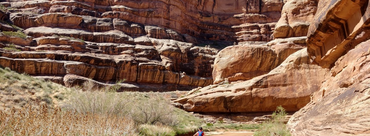 Luke Garten and I set out to get the speed record for the lower section of the Grand Gulch, which starts just above the Narrows at Collins Spring and ends at the San Juan River. I had rafted the San Juan River in 2010 and hiked a couple miles up the Grand Gulch, so I had an idea of the terrain to expect. The guy who had the FKT up until then had recorded 32 miles, although he reported that he had gotten lost and popped out on top. As it turned out he must have cut off a lot of mileage in doing so since he dropped back into the gulch further down canyon. Luke had mapped it out and made a GPX file that said it was closer to 35 miles. We had just run a hard and fast effort in Red Rocks outside of Las Vegas (each of us separately running it and getting the female and male unsupported FKTs for Turtlehead Peak) and two longer runs, one in Grand Canyon National Park and one in Zion National Park, as this was a stop on a longer road trip. Our legs were tired going into it, but we were ready for the challenge.